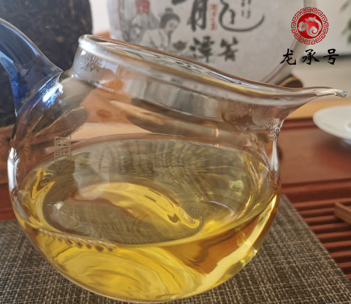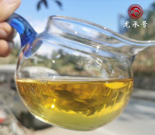 湯色:黃綠透澈。龍?zhí)扼湟蛟?mdash;—古茶樹,獨特的生長環(huán)境,使得龍?zhí)扼涑尸F(xiàn)出純粹、干凈,但是帶著深山林野的自然狂野之韻。這款龍?zhí)扼涫莿側(cè)岵娘L格,香氣濃郁有力度,你可以清晰的聞到那種山野的氣息、爛漫雅致的花香,以及只有易武茶能夠聞到的油潤香氣。