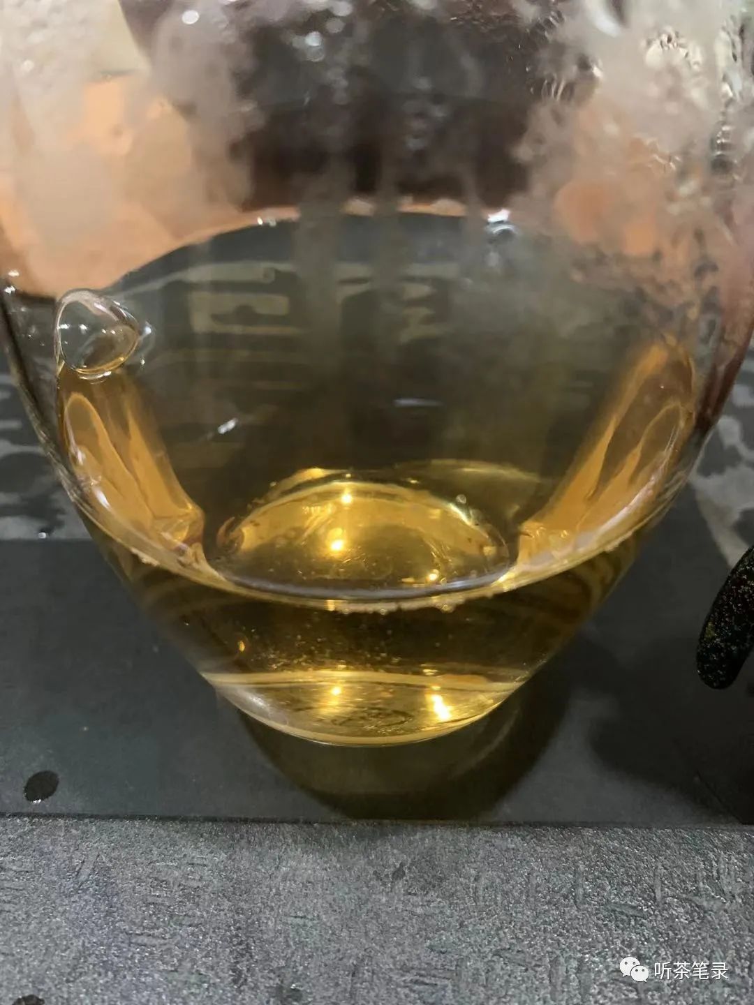 第五泡,湯色金黃透亮,在光線的加持下賞心悅目,茶湯入口依然是非常細(xì)膩順滑,香氣跟滋味都是蘊(yùn)含在茶湯里面的,進(jìn)入口腔散開的時(shí)候能感受到非常清晰的層次感,曼松的茶氣是內(nèi)斂的,不經(jīng)意間體感開始出現(xiàn),回甘生津綿密。