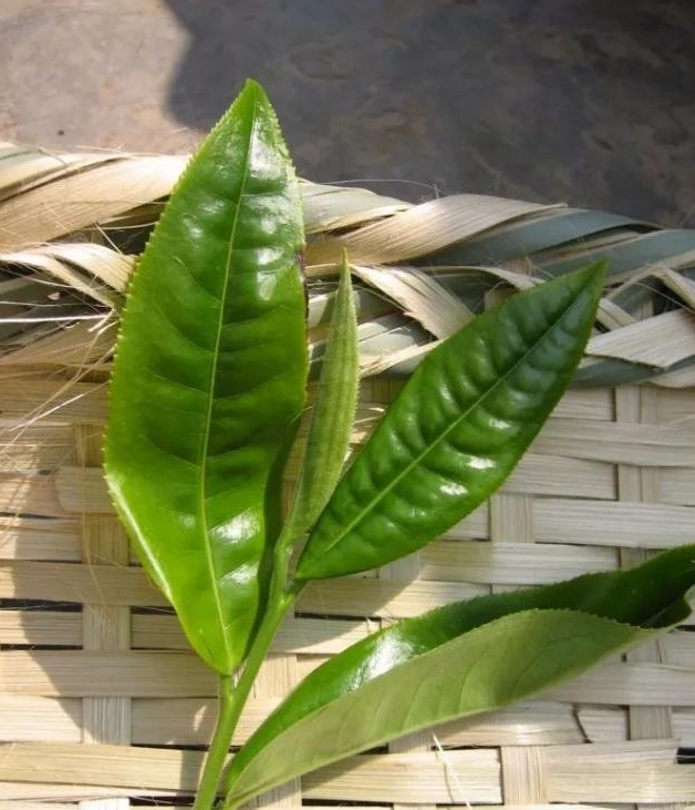 小喬木型,葉形橢圓,葉面、葉身平,葉質(zhì)稍硬,葉色墨綠,葉緣平,芽葉色澤翠綠,芽葉絨毛多。