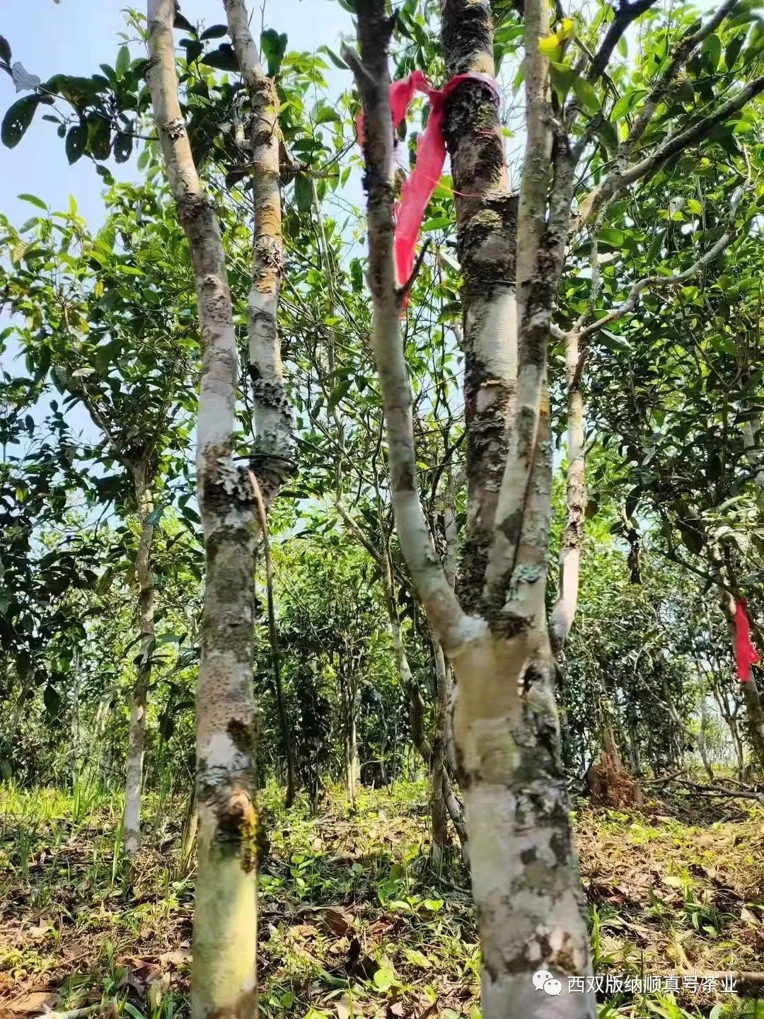 最大的幾十株栽種在屋后的地坎上,樹齡有近千年,其中一棵高11.7米,根部最大徑圍2.74米,是目前漫灣古茶山中發(fā)現(xiàn)的最大的栽培型古茶樹,枝繁葉茂,樹干蒼勁彎曲,猶如蛟龍出海,被稱為