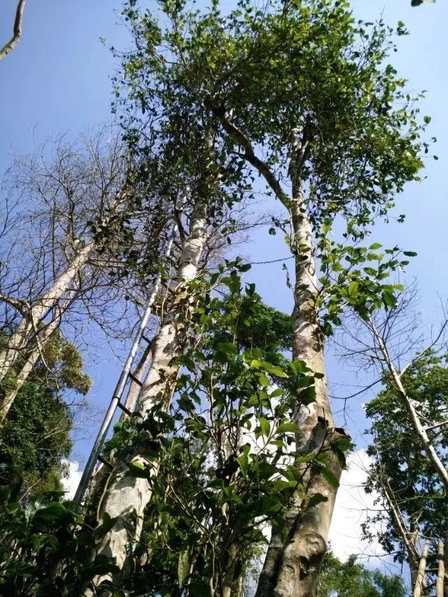 最大的幾十株栽種在屋后的地坎上,樹齡有近千年,其中一棵高11.7米,根部最大徑圍2.74米,是目前漫灣古茶山中發(fā)現(xiàn)的最大的栽培型古茶樹,枝繁葉茂,樹干蒼勁彎曲,猶如蛟龍出海,被稱為