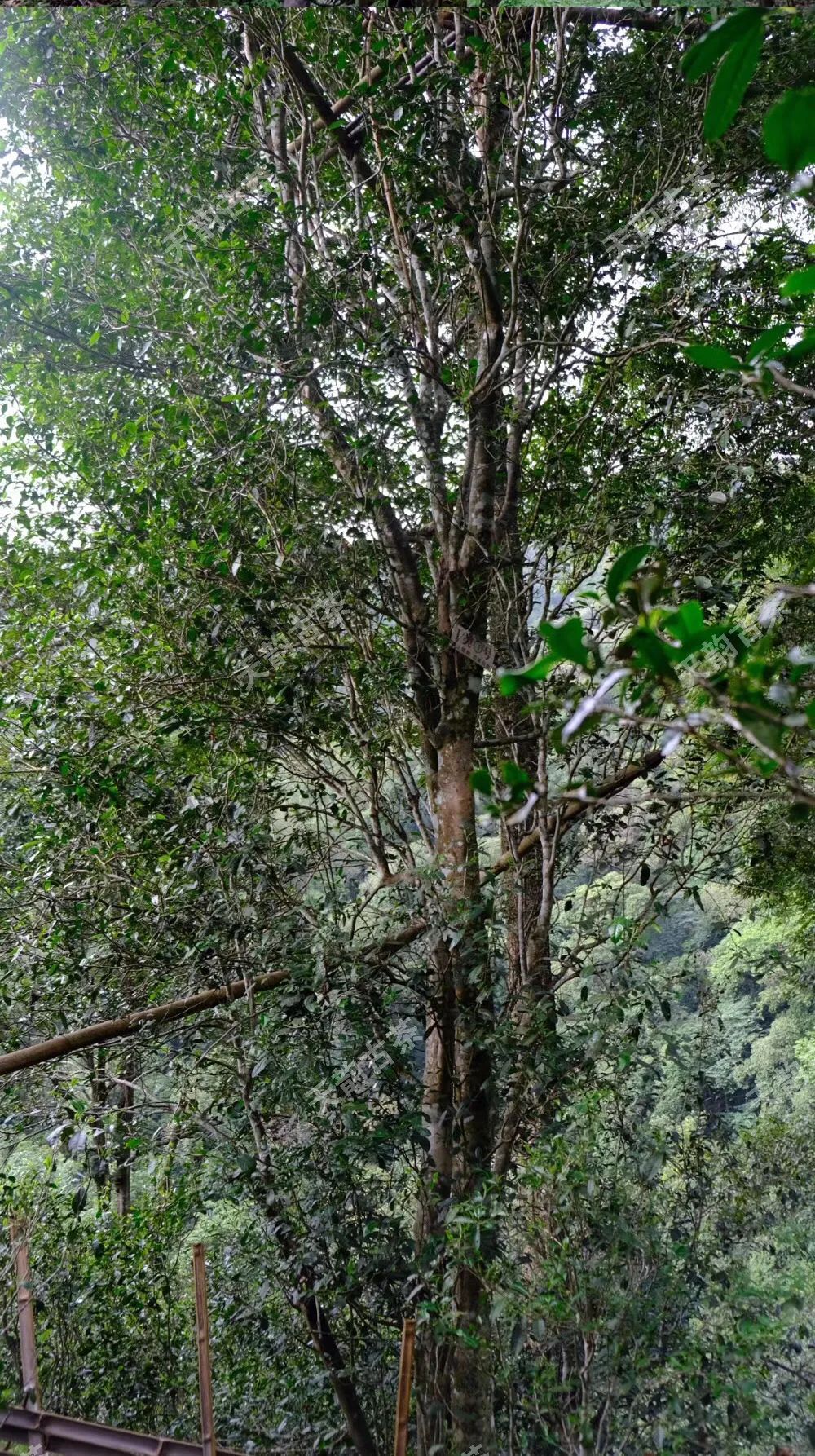 最大的幾十株栽種在屋后的地坎上,樹齡有近千年,其中一棵高11.7米,根部最大徑圍2.74米,是目前漫灣古茶山中發(fā)現(xiàn)的最大的栽培型古茶樹,枝繁葉茂,樹干蒼勁彎曲,猶如蛟龍出海,被稱為