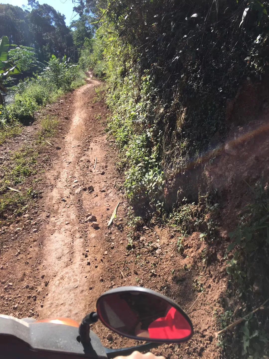 去薄荷糖的路非常難走,首先得坐一個(gè)小時(shí)左右的汽車到達(dá)丁家寨,然后再?gòu)亩〖艺T摩托車沿著鄉(xiāng)村蔽遮的土路,顛簸足足四十分鐘,上山摩托車只能開到一半,還有一半需要步行。