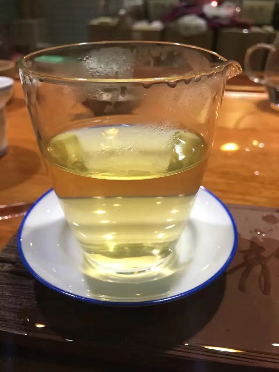 薄荷塘開湯金黃通透,非常油亮,入口感覺不到絲毫的苦澀,水路細(xì)膩稠滑,香氣融合于茶湯中,含在嘴里有種舍不得下咽的感覺,回甘生津分布非常廣,連綿不斷,持續(xù)很久,喉韻深,喉嚨里甘韻明顯持久,舌面及上顎有薄荷涼,整個(gè)茶給人感覺非常的柔甜,茶湯柔綿細(xì)膩。但是暗勁十足,茶氣較強(qiáng),有股氣往后腦勺上沖,細(xì)品慢咽,更多的感覺油然而生,的確是一款非常內(nèi)斂的易武茶。