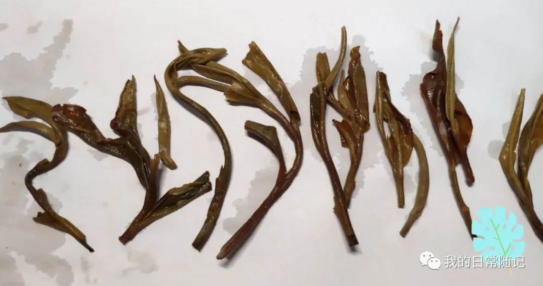 品后記錄:茶湯順滑、干凈,呈金黃色,香氣飽滿;入口后苦澀度極低,花香明顯、香氣飽和度高,喉嚨有清涼的感覺。不要看干茶比較粗大,但茶湯口感與香氣都非常細膩。一共泡了10泡左右,仍然不掉水,這是一款不敢多喝的好茶??慈~底做工精細,芽頭壯碩。以新茶而言,薄荷塘果真不同凡響。