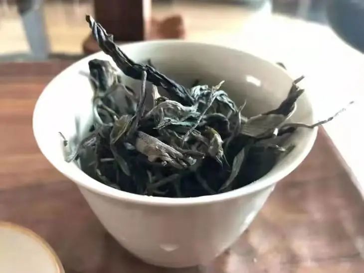 刮風(fēng)寨茶王樹干茶外形看上去就與其它易武茶不同:條索緊結(jié)黑亮,芽肥枝壯,葉脈清晰,看上去顏色比其他茶品更偏黑些,加上茶芽滿披茶毫,可謂黑白分明,顯得格外惹眼。抓一把干茶在手,沉甸甸的感覺較其它易武茶更加明顯,還沒沖泡便能感知其內(nèi)涵物質(zhì)的豐富。