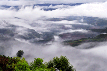 景邁山位于中國(guó)云南省的西南邊陲, 在普洱市瀾滄拉祜自治縣惠民鄉(xiāng),西鄰西雙版納勐??h,東鄰緬甸,是西雙版納、普洱與緬甸的交界處。這里群山環(huán)抱,山巒疊翠,山川秀美,南朗河(南臘河)和南門河在山谷中緩緩流淌。在這里夏無酷暑,冬無嚴(yán)寒,四季如春,雨量充沛,土壤肥沃,山花爛漫,果實(shí)累累,亞熱帶風(fēng)光旖旎。山間云霧繚繞,山下云海茫茫,猶如人間的世外桃源。