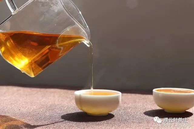 由于刮風(fēng)寨普洱茶的茸毫很多,初湯稍顯渾濁,茶湯顏色較深,口感順滑,稍有霸氣。