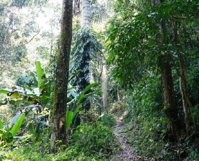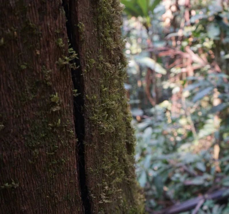 從刮風寨行約13公里(前8公里土路可由越野車、皮卡車代步,后5公里需經崇山峻嶺,跨越陡峭的羊腸小路,因此只能徒步攀爬),從刮風寨到達茶王樹,歷時三個小時左右,徒步上山,看奇花異草伴著崎嶇狹窄的山間小路,蜿蜒至原始森林中,到無路之時步行入林,鳥語乘風環(huán)繞、穿越疏影斑駁、腳踏淙淙流水,一路上完整的原始森林生態(tài)美景讓人驚嘆。