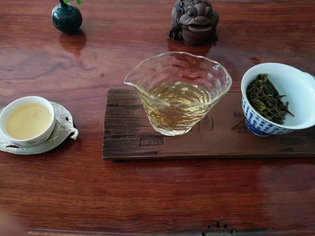 有位老茶客總結道:“茶王樹干茶蜜香清揚,隱有甜感;茶湯入口,留于喉嚨,持續(xù)穩(wěn)重;略有苦澀,回甘涼甜,生津持久;葉底黃綠光亮,柔軟厚實,繞有彈性。前段葉底香夾帶叢林氣韻,后段熱嗅冷嗅,均有淡雅甜香。”