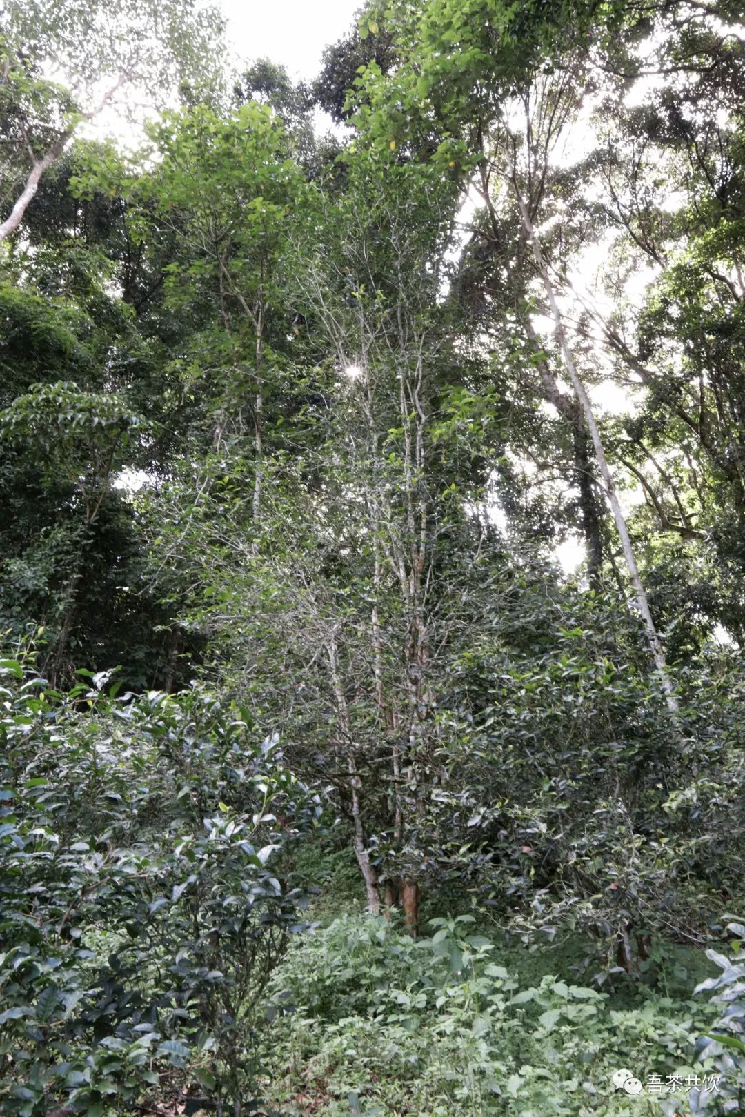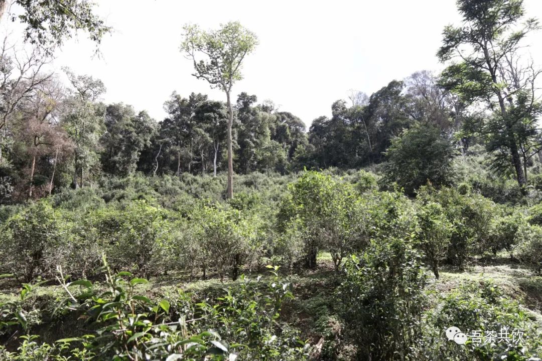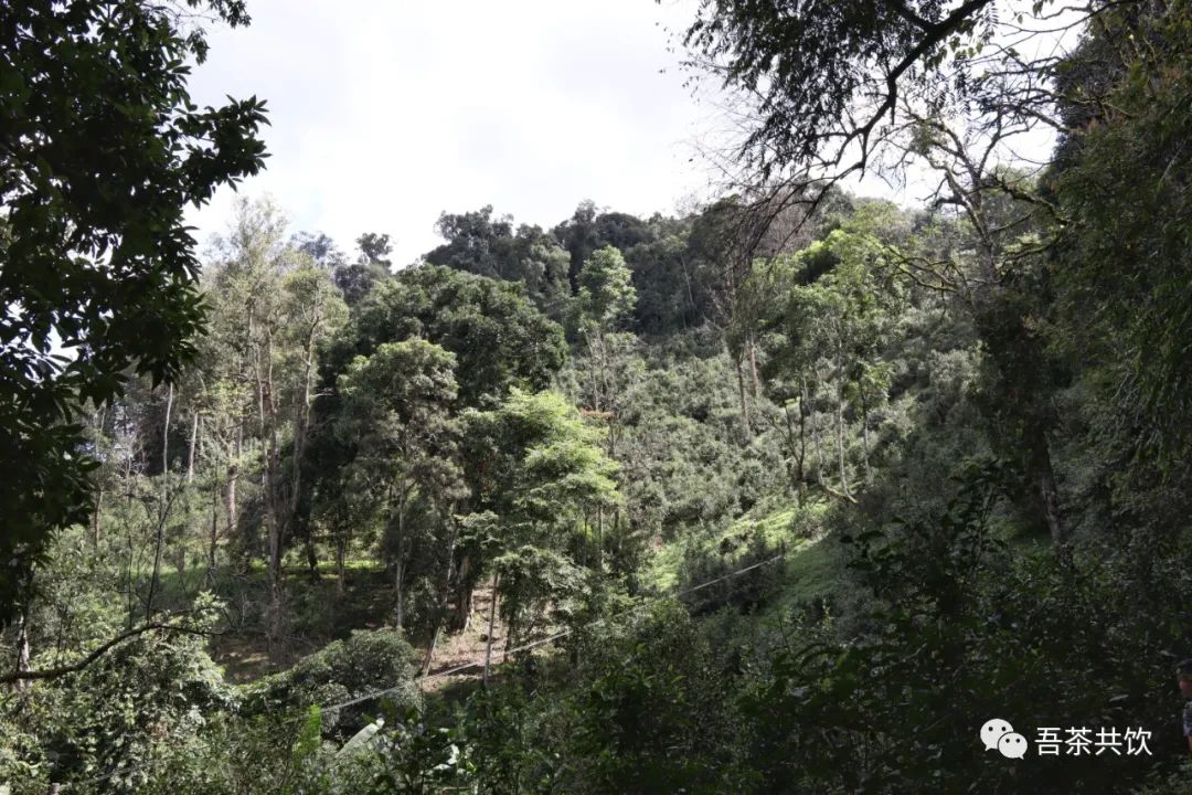 穿過一個很小的樹林,眼前的視野變得開闊,樹更大了,茶樹更多了,遠遠望去,那片山不是易武茶最貴的區(qū)域么,可惜現(xiàn)在已經(jīng)不能讓外來人進去了 。