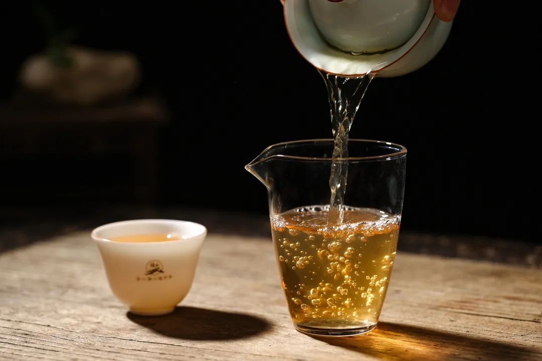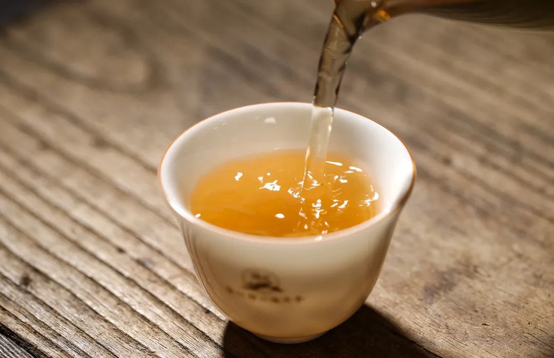 湯色:金黃明亮,茶湯的油質(zhì)感可以非常清晰的看到。