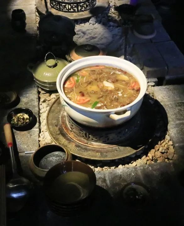 四方之食,不過(guò)一碗人間煙火,結(jié)束一天的繁忙工作,約上三五好友溜進(jìn)火塘烤茶,來(lái)一頓特色炭火鍋,圍坐在火塘前把酒言歡,品一品不見(jiàn)茶,飲幾杯烤茶,心曠神怡,或許這就是烤茶文化的魅力所在吧!