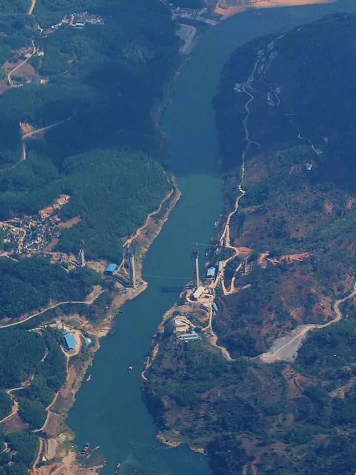 飛往臨滄的班機上鳥瞰昔歸茶山和建設(shè)中的瀾?江高速公路大橋