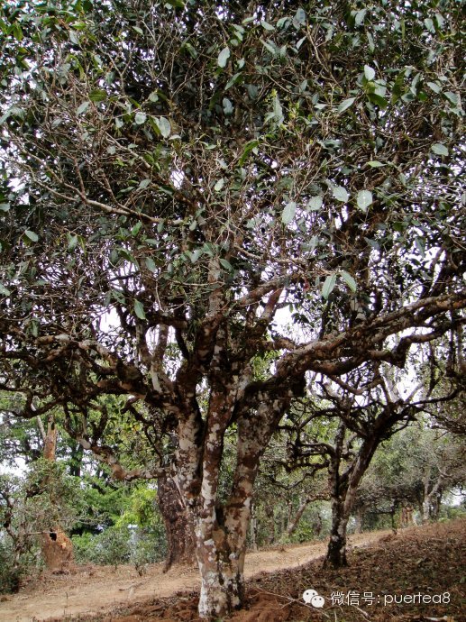 哈尼人古時(shí)沒有矮化茶樹的習(xí)慣,他們不砍茶樹,只將上面的枝條拉彎與下面的枝條拴在一起,讓一根根枝條往下彎著長,由于中華人民共和國成立后不用此法,松綁后,古茶樹枝條彈回伸得很高。