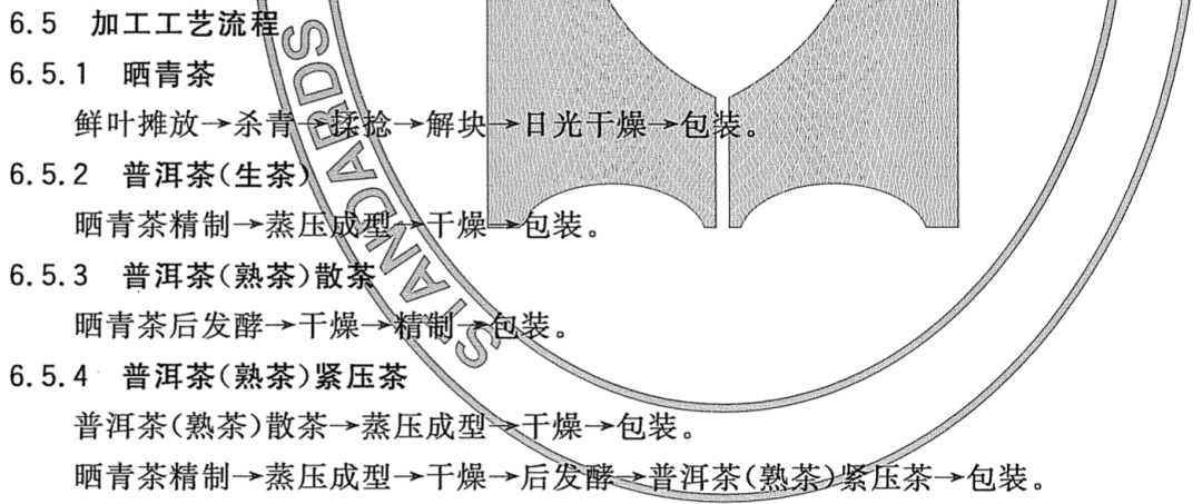 請注意“6.5.4 普洱茶(熟茶)緊壓茶”的兩條表述: