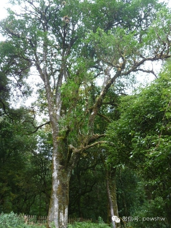 一棵高大挺拔、枝繁葉茂,桀驁不馴的茶樹王悄無聲息地佇立于我們的眼前。二十五點六米的傲人身軀,零點八九米自豪的胸圍,一點二米牢固的根徑,二千七百年令人折服的樹齡,無不訴說著一個傳奇、一個奇跡。與其說您是茶樹之王,倒不如說您是我們心中的茶神。斗轉(zhuǎn)星移,滄海桑田,您靜靜庇護著這座森林寶庫里的每一位成員,共同成長,相安無事。樹旁兩塊醒目的大理石碑上書——“世界茶王舉世無雙”“國茶瑰寶”,十二個字鏗鏘有力,擲地有聲,無可辯駁的鐵證奠定了這棵茶樹王在我們這個地球上獨一無二的地位和不可估量的價值。“天賜普洱,世界茶源”的美譽名不虛傳。