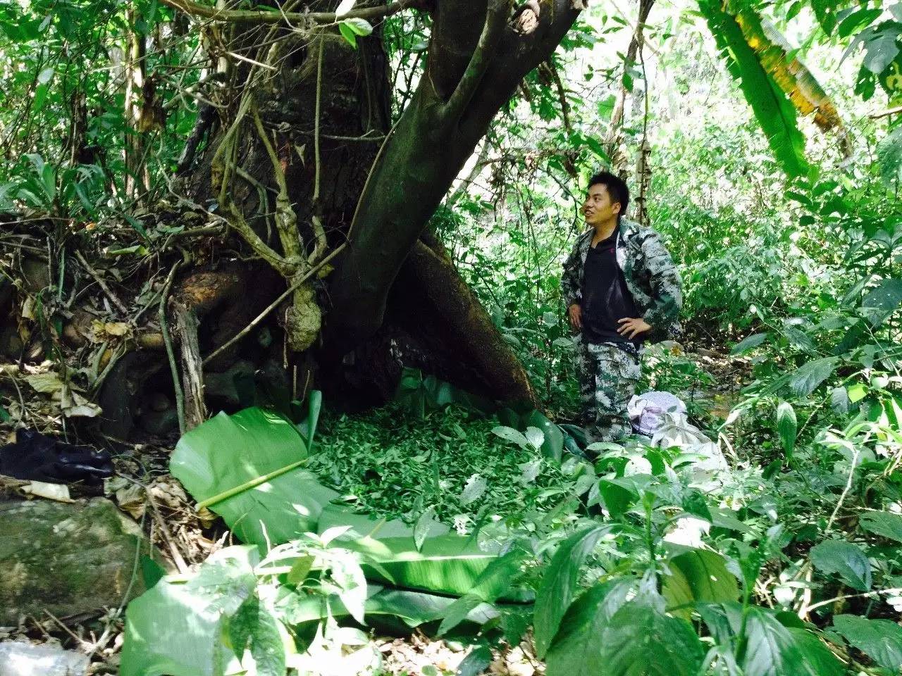 茶坪的古茶園只能說是想對集中,一塊一塊的分散在溪谷兩邊的陡坡上,從高空往下俯瞰,應(yīng)該像芭蕉上的水珠一樣吧。這里的茶葉多幽黒沉綠,葉面油光發(fā)亮。大部分樹都不大,樹干成人手腕粗細(xì),從地面開始分支,一株茶樹常有多個分支。也不是很高,樹高多為兩三米。茶地的草被修整得相當(dāng)干凈,只有剛剛冒出來的嫩草。茶樹的老葉子很少見,百分之七八十以上都是新鮮的芽頭。茶地四周即是連綿森林。土壤以紫色土壤和紅色土壤為主,山澗中的石頭也多是紅色石頭和紫色石頭,像粉筆一樣,可以用它們在硬石上寫字、畫畫。茶農(nóng)們每年茶季都會請很多工人幫忙采茶,由于茶地離寨子較遠(yuǎn),為方便不誤時,工人們一般都住在山上臨時的窩棚里。茶農(nóng)們每天上午去送菜、轉(zhuǎn)茶地,下午一起采茶。