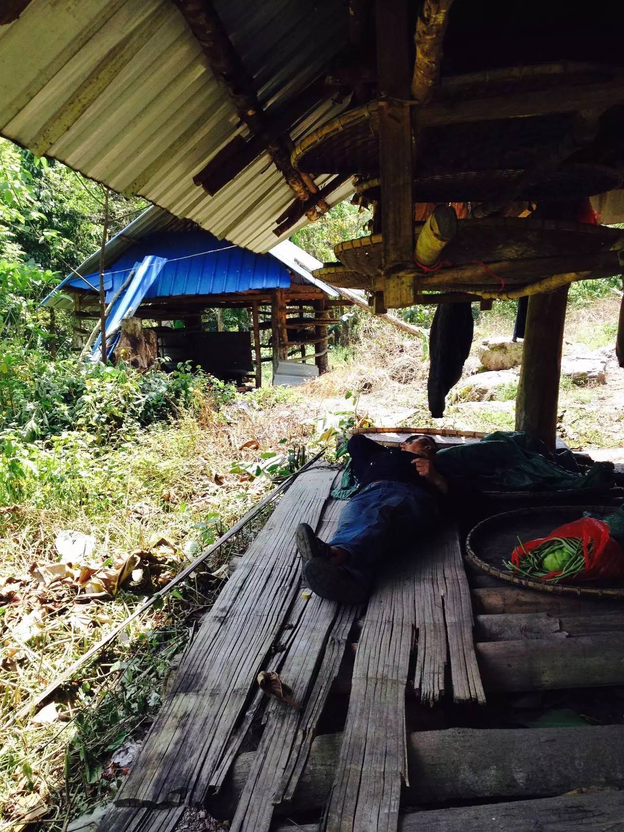 (茶農(nóng)在山上窩棚中午休)