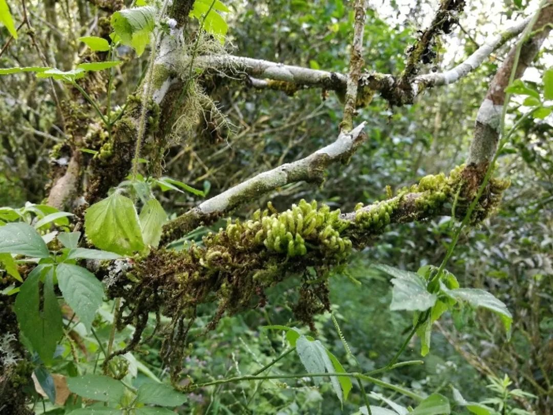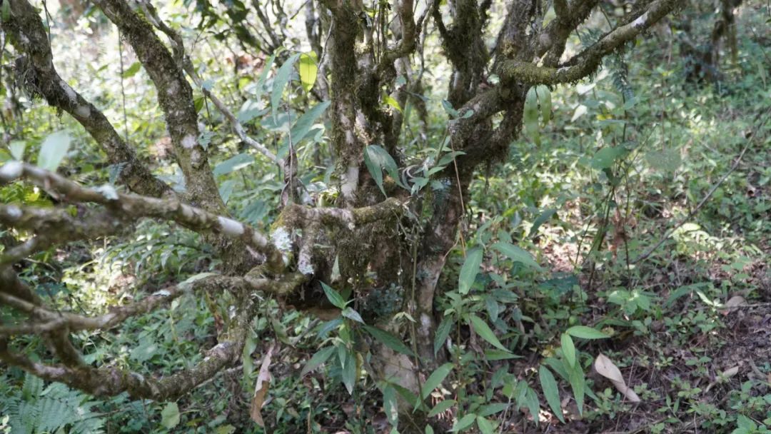 只見(jiàn)古茶園內(nèi)茶樹(shù)與其他樹(shù)種和諧共生,綠意交織;茶樹(shù)上的樹(shù)枝上甚至植物寄生。古茶園環(huán)境之原生,生態(tài)之純凈,令游者動(dòng)容。