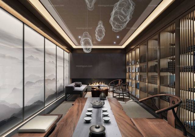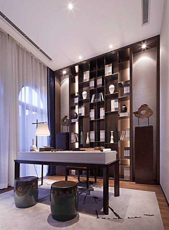 當(dāng)書房和茶相遇,是源于千年骨血的相契相合,讓傳統(tǒng)文化在現(xiàn)代社會里得以優(yōu)雅互存,散發(fā)出濃濃的生活氣息。讀書與品茶對環(huán)境的要求又極其相似,那么在茶室中組合書房能更好地利用空間。