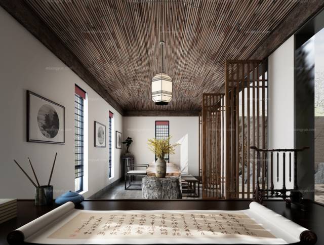打造一款書房茶室,品茶、練字、讀書,在書情畫意中沉淀心靈,感受安靜;在清新茶香中感悟人生,洗滌心靈。
