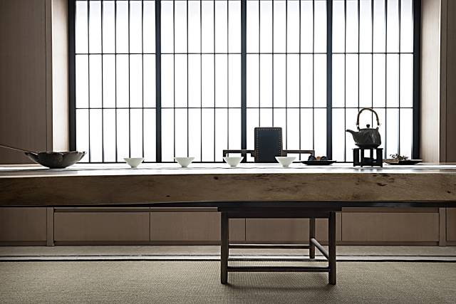 茶室,是一個可以靜心、靜茶的地方。偌大的茶室可以只是一處茶席,一套茶具,一束插花,幾張木椅,簡約到了極致,但絕不簡單。
