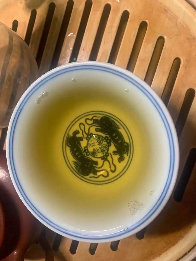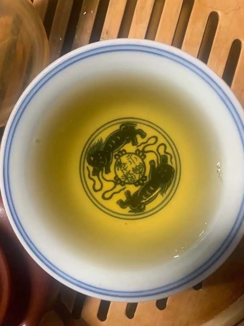 第一泡茶湯呈淡黃色,入口有微微苦澀感,入口后約30s化開(kāi);茶湯入喉后有些許回甘和生津之感。