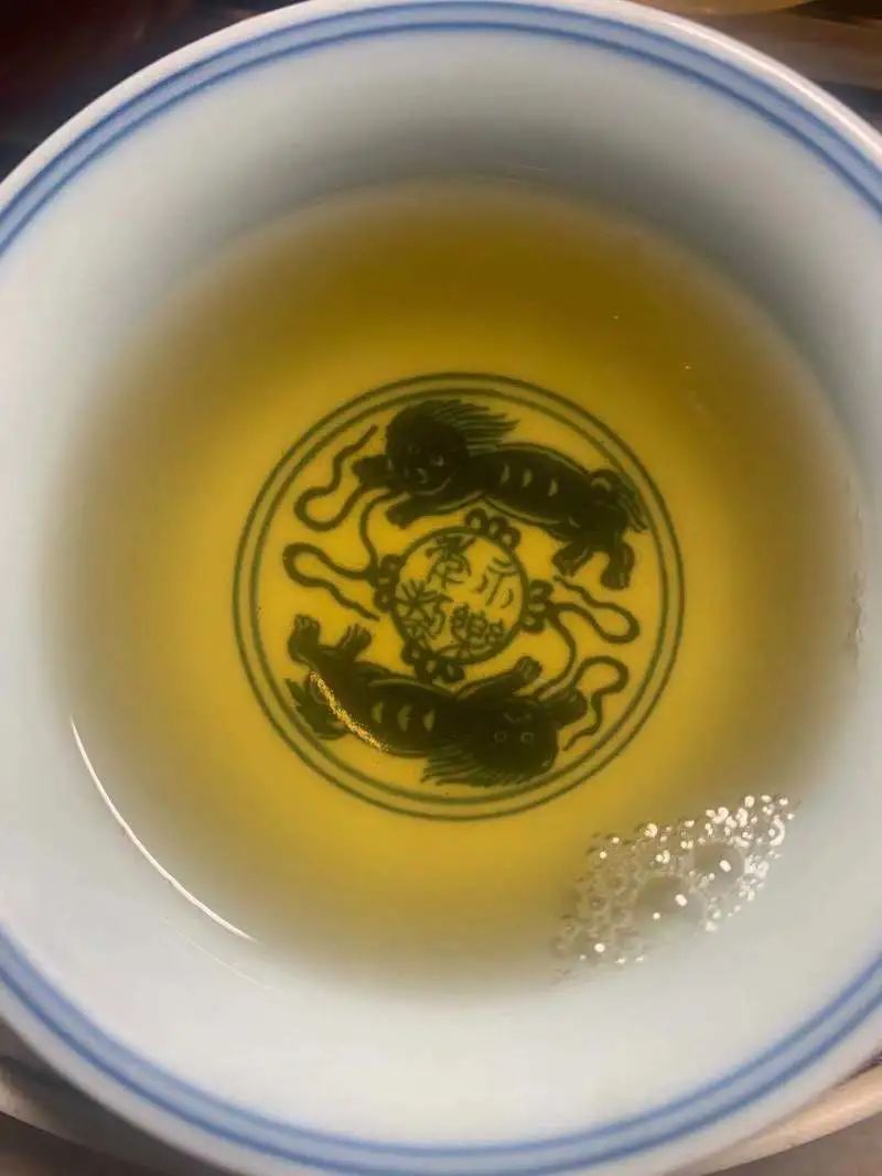 首先茶湯顏色橙黃透亮,茶湯入口后苦澀感較前三泡有加強(qiáng),但澀感在舌面大約10S就全部化開(kāi)了;茶湯入喉后回甘生津感真的不錯(cuò),持續(xù)回甘和生津,隱隱還能喝出此茶的一股氣感,這個(gè)沒(méi)法用語(yǔ)言詳細(xì)描述;入喉后感覺(jué)有股氣在胸腔,非常舒服。