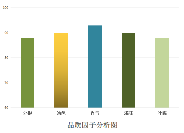 葉質(zhì)肥壯柔軟,色澤黃綠鮮活,光澤度好。