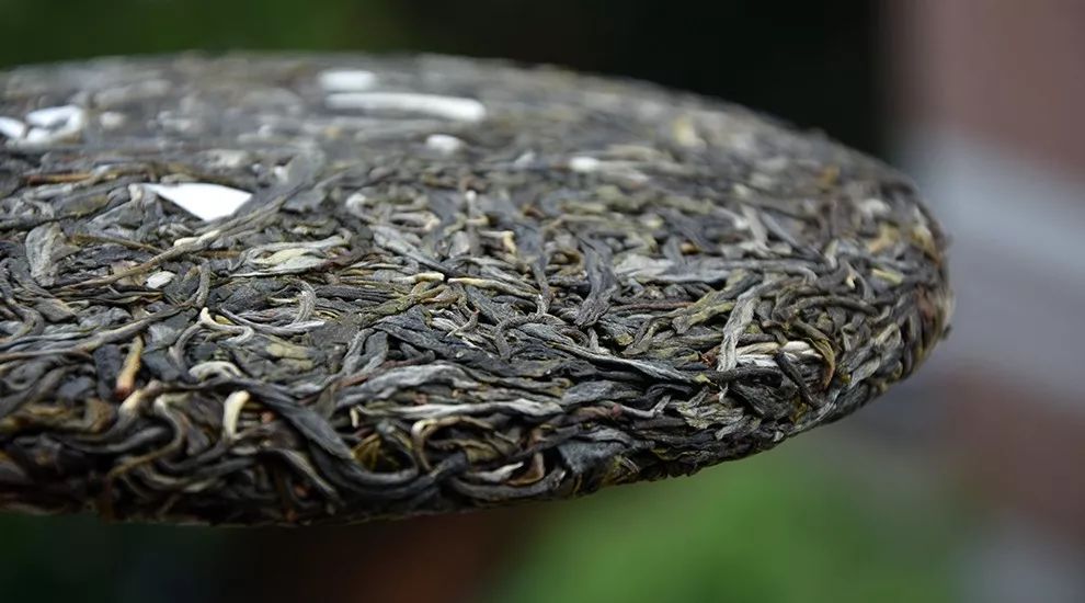 (357克大餅,石磨壓制,外形肥壯飽滿,色澤油潤瓦灰,金毫外顯,芽頭飽滿)