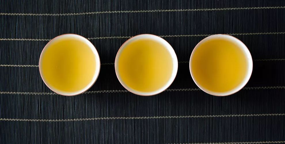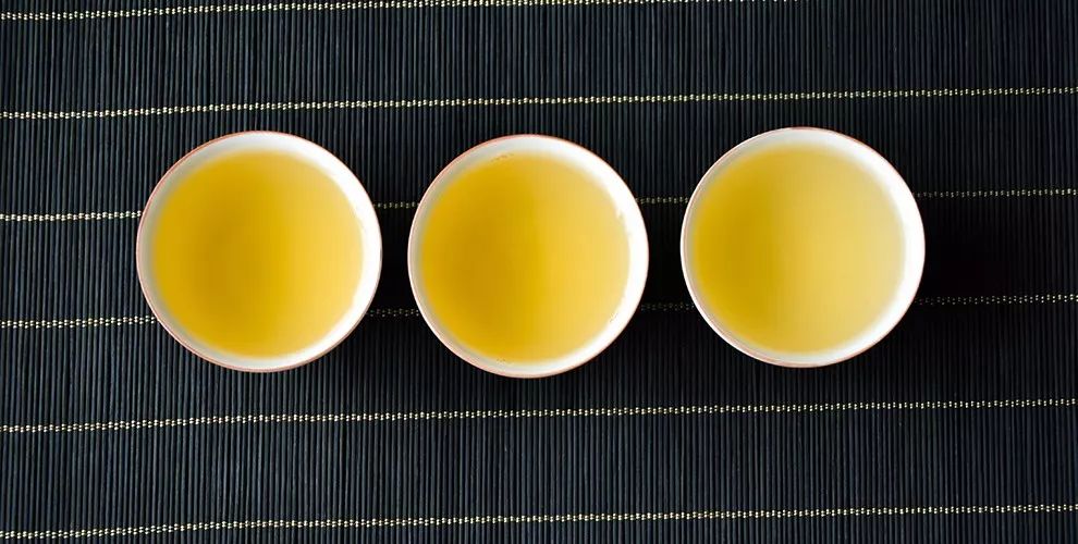 中段沖泡(4-6泡,從左→右)出湯后湯色蜜黃明亮(亮度高),熱嗅蘭花香純正,冷嗅紅糖香愈加濃郁,茶湯入口濃厚甘甜,紅糖般甜感依舊,回甘生津后水路更為柔順,山野韻久久停留在口腔,回喉茶氣霸道。