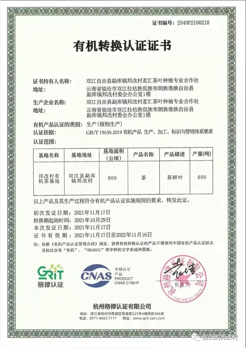 邦改村——該行政村隸屬雙江拉祜族佤族布朗族傣族自治縣勐庫(kù)鎮(zhèn),其全村分為大寨片區(qū)和以寨片區(qū)。追溯邦改茶葉歷史,茶葉一開(kāi)始是由拉祜族種植開(kāi)來(lái),之后漢族才搬遷來(lái)到這里。據(jù)大寨片區(qū)的漢族村民描述說(shuō),在大寨片區(qū)古道邊就是邦改最老的茶園。他們祖上來(lái)邦改時(shí),就有那些茶樹(shù)了,是拉祜族種下的。