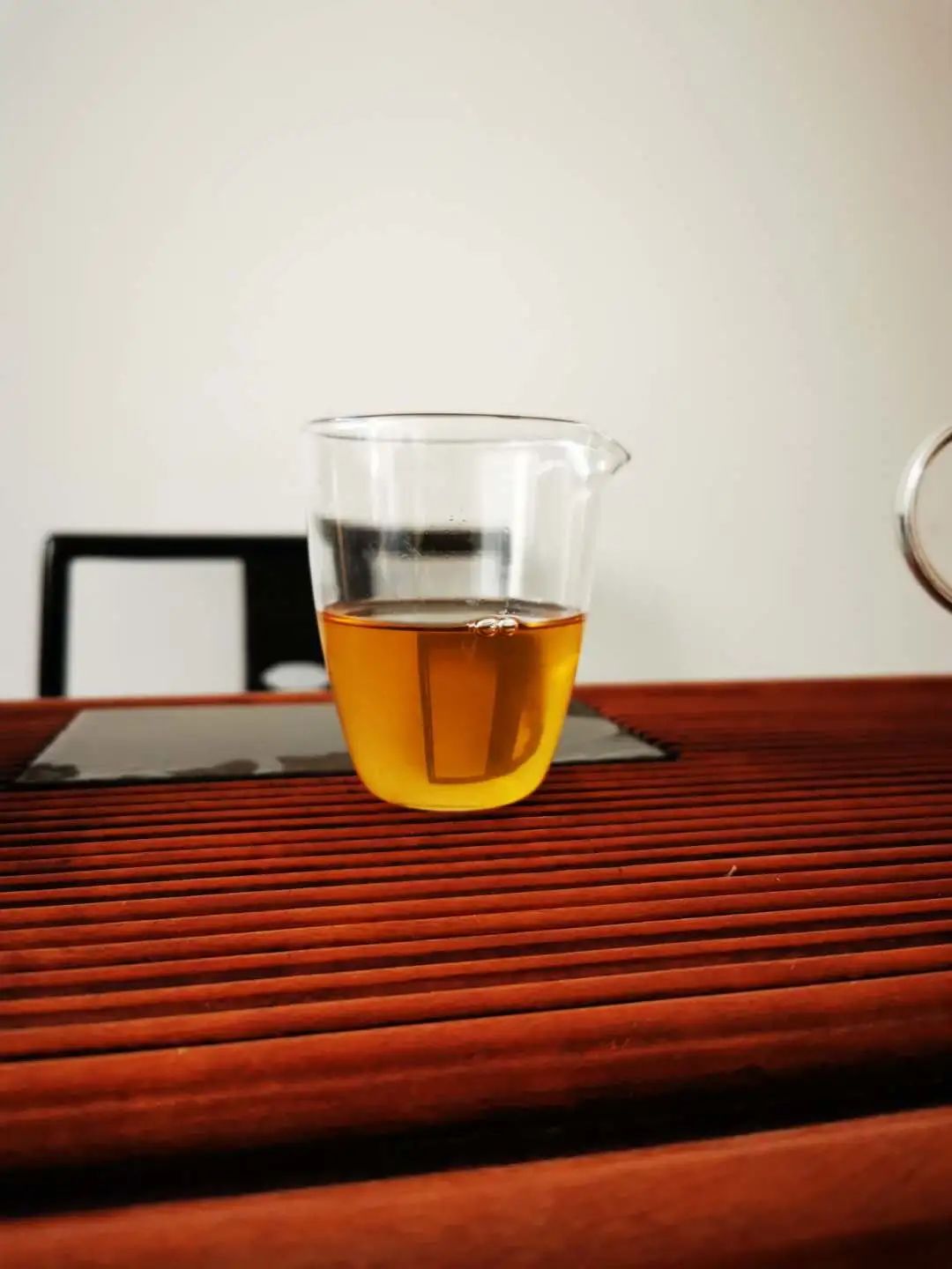 茶湯清可見底,將茶湯從公道杯分出,搖晃一下公道杯,溫柔嗅公杯的香氣,股股濃烈