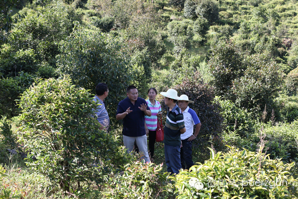 圖為:包科長與考察組在迷帝古茶園現場交流