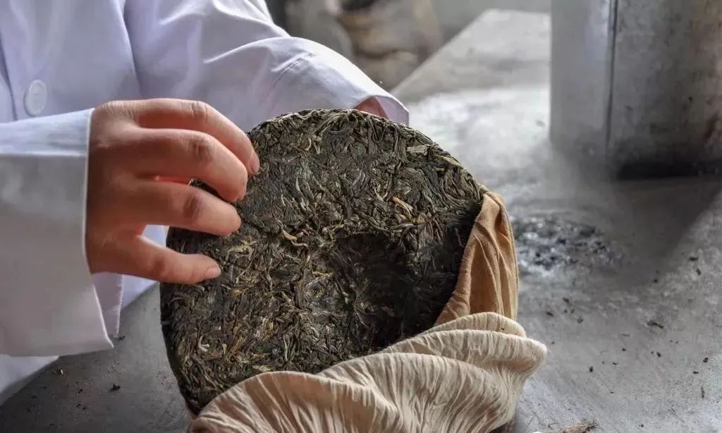 曬青毛茶,經(jīng)過蒸壓,水蒸氣讓干茶變軟,膠質(zhì)物質(zhì)浸出,便于壓制成型。而蒸壓過程的溫度與時間,利于后期的陳化。