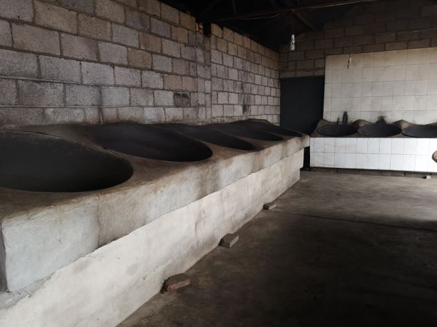一波三折后終于抵達黃家寨官寨。我們直接來到官寨德鳳茶廠的初制所,四處參觀,初制所內(nèi)設(shè)施完備,管理有序,棚內(nèi)堆有兩堆曬干的秋茶毛茶,香氣四溢。