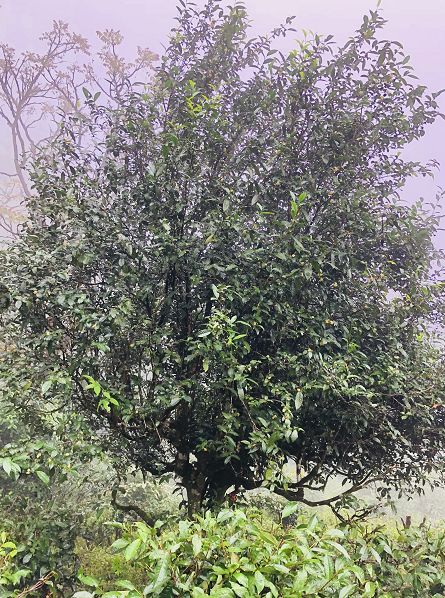 在這里,無論是小樹還是古樹,都以大葉種為主。在海拔1800余米的亞熱帶季風性雨林中,云霧之下的小樹茶林密密層層像海浪般推開,其間雜生的古茶樹亭亭玉立,有如帆影空遠。一些茶樹清水出芙蓉,道法自然,曼生于路旁。