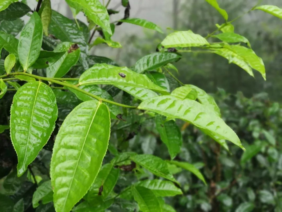 細雨蒙蒙,那些招展、光亮、肥碩的葉片傲然而上,欣欣向榮,生機勃勃,空氣中都滿溢著清淡的茶香。不禁,一句“山深雨氣足,秋來第一流”即景涌出,思緒飄然。