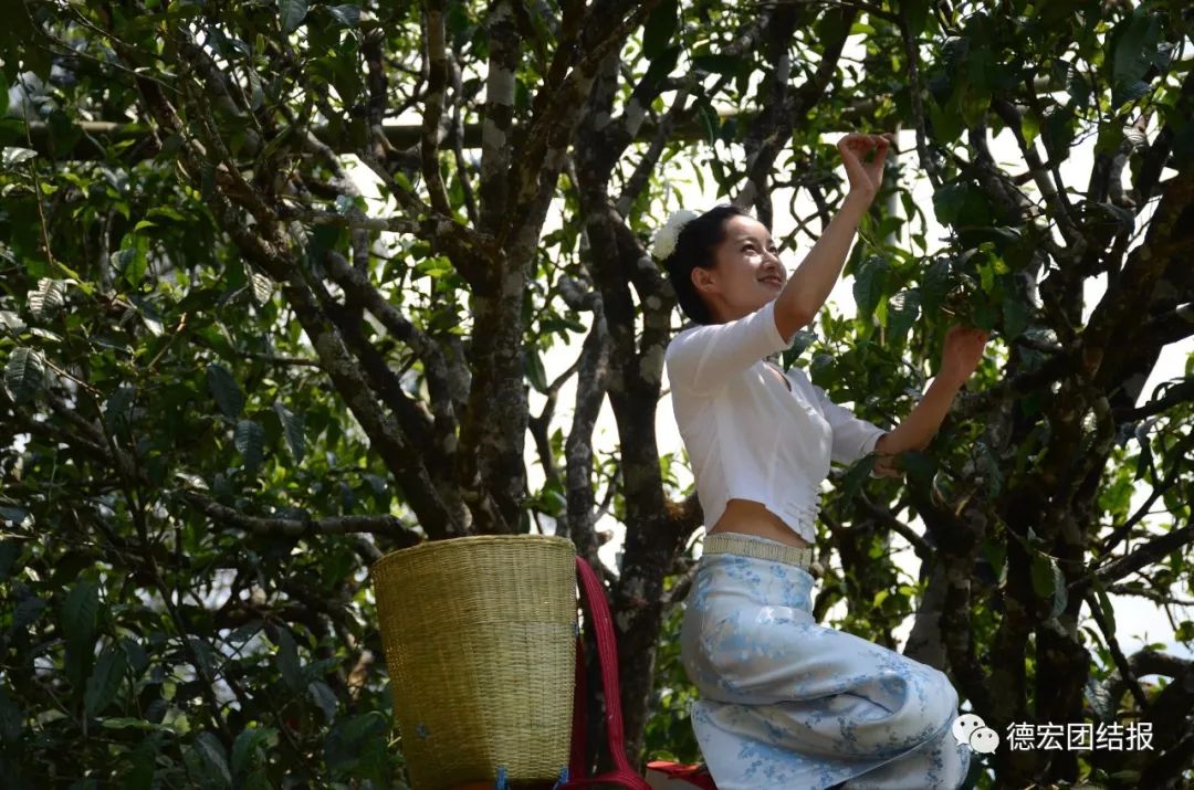 活動(dòng)現(xiàn)場(chǎng)鑼鼓歡騰,熱鬧非凡。參加活動(dòng)的領(lǐng)導(dǎo)和嘉賓共同為茶園內(nèi)一棵高6.85米、百余年樹(shù)齡的官寨茶王樹(shù)揭彩。隨后,采茶體驗(yàn)活動(dòng)在風(fēng)景如畫(huà)的官寨茶園展開(kāi),從“尋找最美孔雀公主大賽”中脫穎而出的7位美麗的“孔雀公主”背上籮筐,帶領(lǐng)著在場(chǎng)嘉賓登上茶王樹(shù)的摘采架,或是穿梭于高低錯(cuò)落的茶樹(shù)間,盡情體驗(yàn)采茶樂(lè)趣,感受生態(tài)之美、人與自然和諧之美?;顒?dòng)最后,大家圍爐品茶,在醇厚的茶香中細(xì)細(xì)品味德宏古樹(shù)茶的文化魅力。