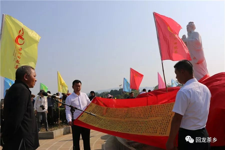 祭奠茶圣民俗活動已成為回龍茶文化節(jié)一個重要的組成部分。向天地和茶圣敬獻祭品,表達對茶圣陸羽的尊崇,祭師宣讀祭文,舞獅,祈愿來年風調雨順、茶葉豐收、國富民強。