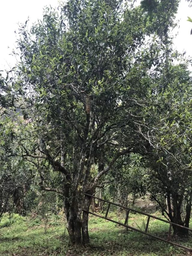 最大的幾十株栽種在屋后的地坎上,樹齡有近千年,其中一棵高11.7米,根部最大徑圍2.74米,是目前漫灣古茶山中發(fā)現(xiàn)的最大的栽培型古茶樹,枝繁葉茂,樹干蒼勁彎曲,猶如蛟龍出海,被稱為