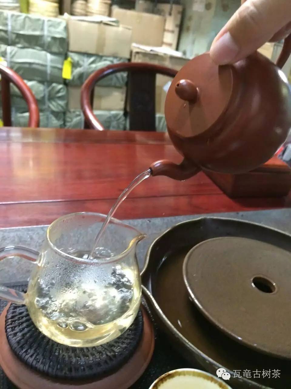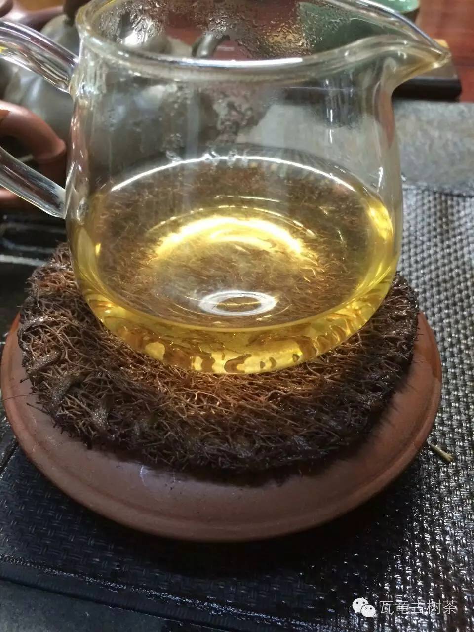 瓦竜海拔在1200-1500左右,氣候宜人,這里是古六大茶山唯一的特大葉種產(chǎn)區(qū),茶葉口感上有易武的特點,也有勐海茶區(qū)的苦澀,瓦竜寨古樹茶,茶葉粗壯肥大,條索,色澤深墨綠色,顯毫,沖泡后香氣高揚,醇和度非常好,喉韻深刻,滿嘴是茶,茶湯厚度豐滿渾厚,糯感十足,齒頰留香的感受很持久,杯底香濃郁,持久不散,湯水清澈透亮,葉底肥壯完整,呈現(xiàn)墨綠色,完整,豐厚是其最大的特色,野性是其特色,讓人喝過不忘,老人說留上三年才能見其臻,瓦竜古樹是普洱茶留存的典范。