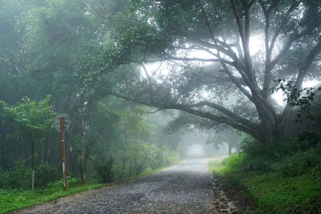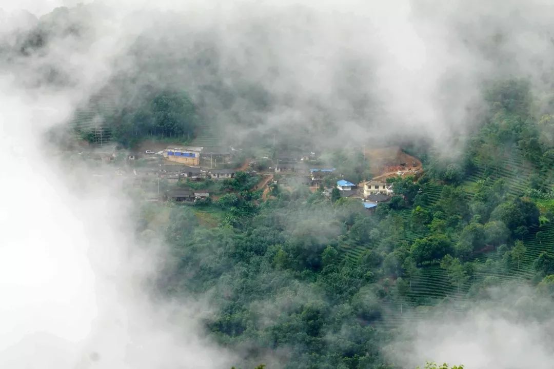 因為剛下過雨,一進山上,就好像到了仙境。整座山一直在“吞云吐霧”,遠(yuǎn)遠(yuǎn)看得見白云飛舞著,漸漸吞沒了幾個小村落。