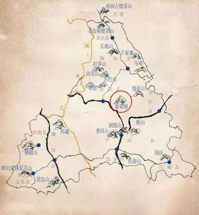 黃草壩古茶樹主要分布在大尖山、困莊大地、大水缸等處,有2200多畝。黃草壩村的大尖山,山勢高峻,云遮霧鎖,古木森森,垂直氣候明顯,生物資源極其豐富,是有名的野生古茶樹之鄉(xiāng),據(jù)《景谷縣志》記載,該山一棵古茶樹是迄今為止在景谷縣境內(nèi)所發(fā)現(xiàn)的最大的野生古茶樹。