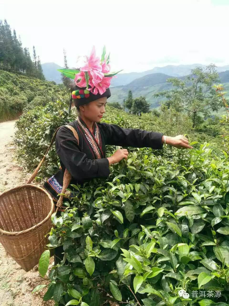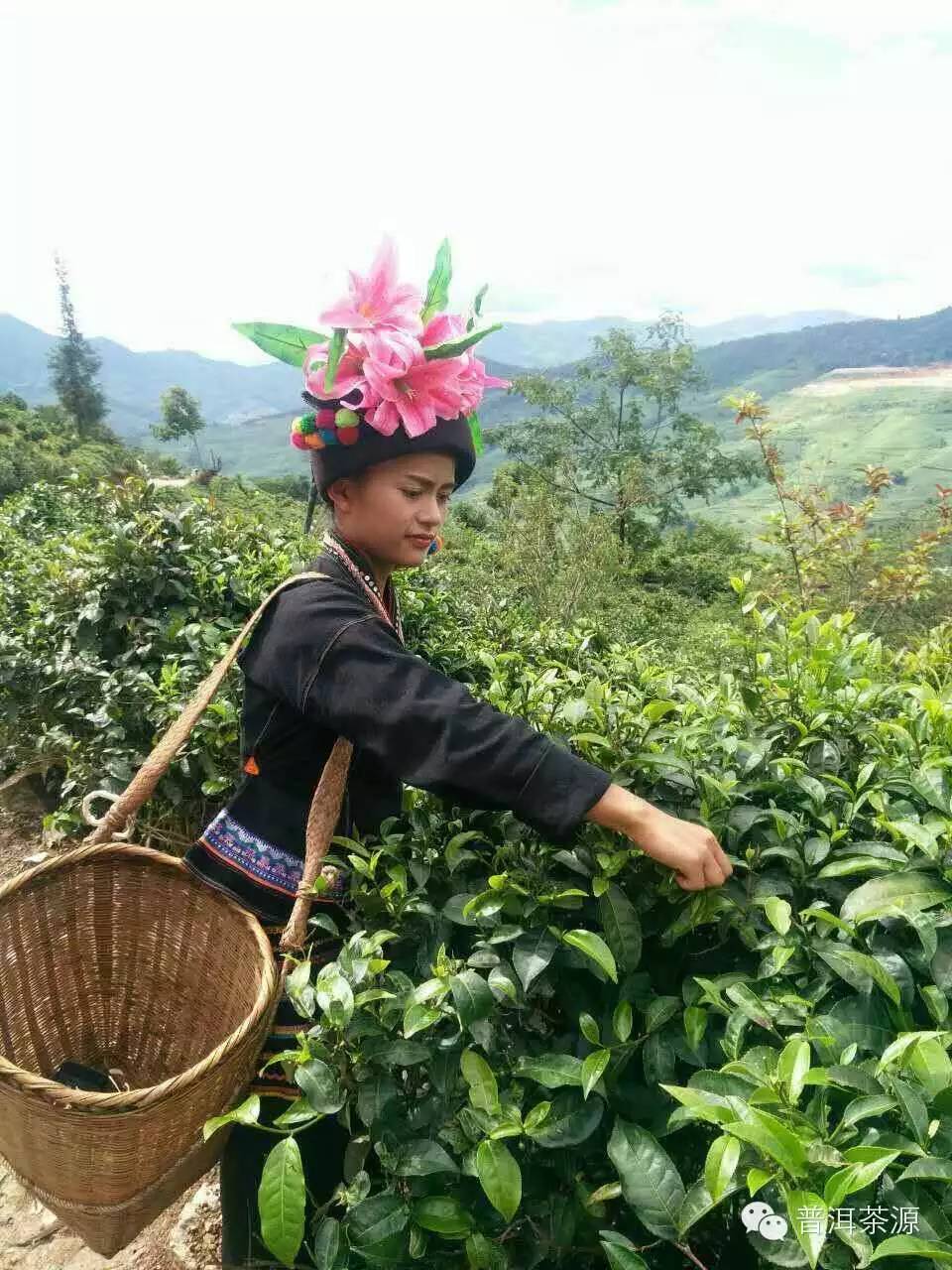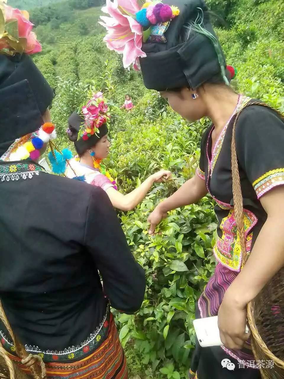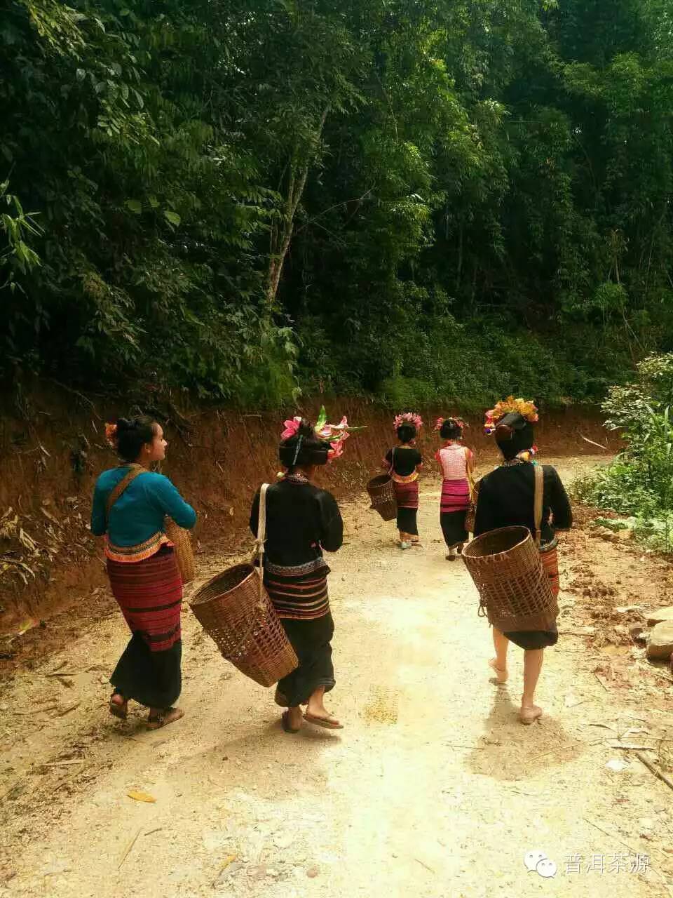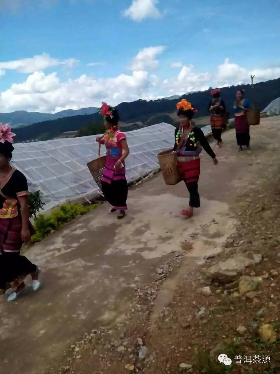 今天在勐海縣西定鄉(xiāng)章朗村與熱情的布朗族姑娘們穿著漂亮的布朗裝,隨著她們走進(jìn)了茶山。