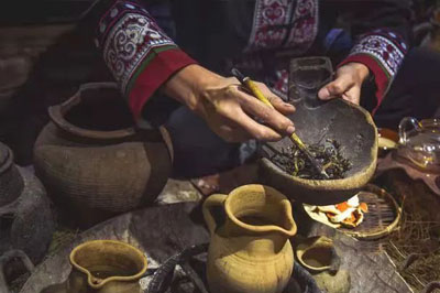 火塘烤茶文化,去年開(kāi)始流行的烤茶,最適合烤茶用的生態(tài)茶,最具原始的制茶工藝和少數(shù)民族火塘文化的融合。 陶罐烤茶的茶葉講究用哀牢無(wú)量山的曬青茶,這種普洱茶消食健胃、降