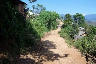 大戶賽村隸屬于雙江縣勐庫鎮(zhèn)大戶賽村委會(huì),下轄大戶賽大寨、花椒樹、張家寨、河邊寨。大戶賽屬于西半山,從南勐河邊的神農(nóng)祠起,順著土路往上盤行,山路彎曲,云霧繚繞,雨量