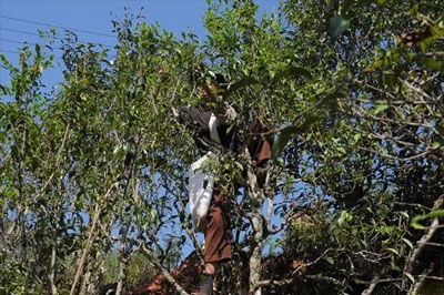 黃草壩古茶樹主要分布在大尖山、困莊大地、大水缸等處,有2200多畝。黃草壩村的大尖山,山勢高峻,云遮霧鎖,古木森森,垂直氣候明顯,生物資源極其豐富,是有名的野生古茶樹之鄉(xiāng)。